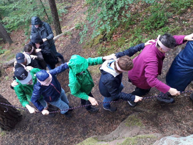 Am zügigsten kommt die Gruppe voran, je besser man sich untereinander abspricht und organisieren. Der richtige Weg muss gemeinsam gefunden werden - dabei helfen ungewöhnliche Richtungshinweise. An verschiedenen Zwischenzielen sind noch verschiedene Aufgaben zu bewältigen – mal sind sie spaßig, dann wieder spannend oder knifflig. Kommunikation und Teamwork ist gefragt.