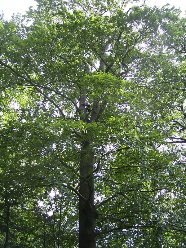 Hier gibt es mal wieder die Gelegenheit sich im Baumersteigen zu üben - also auch für diejenigen, die dies schon seit längerem unterlassen haben und sich gar nicht mehr so recht erinnern können, wie toll dies ist. Dabei geben wir uns nicht mit Bäumchen zu Frieden, sondern nur mit mächtigen Bäumen, die schon einige Jahre auf dem Buckel haben. Der Platz, auf dem wir uns aufhalten werden, ist sicherlich einer derjenigen, mit einer der grandiosesten Aussicht über den Pfälzerwald.