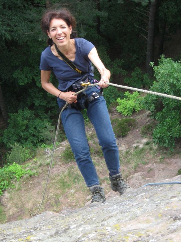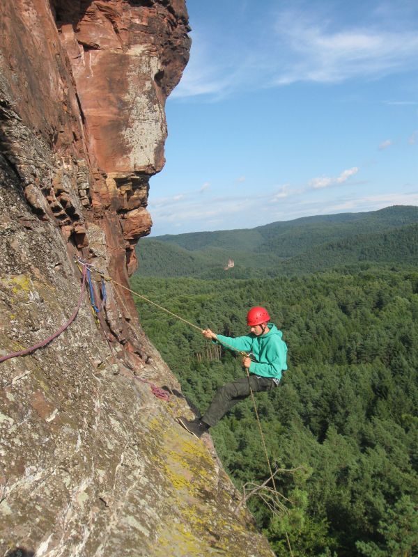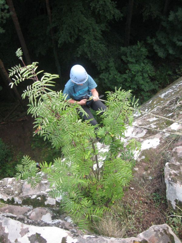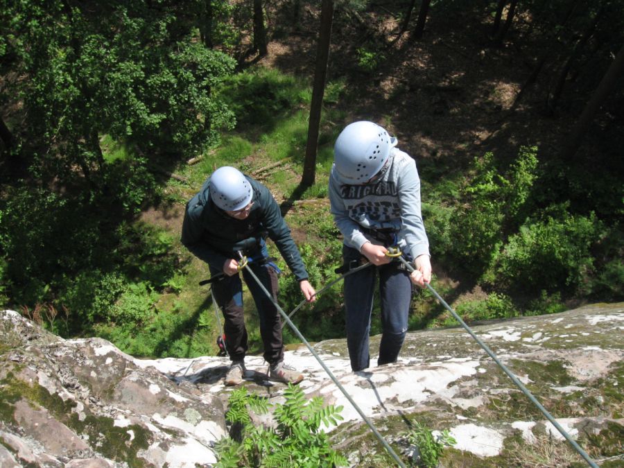 Zu Beginn steht eine kurze Einweisung in die Abseiltechnik - die paar Knoten, die es benötigt, sind schnell erlernt. Beim Abseilen beginnen wir erst mal im Kleinen – ein steiler Hang oder ein Felsbrocken mag da schon reichen. Bestens gesichert steigern wir dann die Höhe allmählich. Jeder bestimmt dabei seine individuelle Grenze selbst. Die Höhentauglichsten können so eine beachtliche Abseilhöhe erreichen und aus dieser frei in die Tiefe zu schweben.