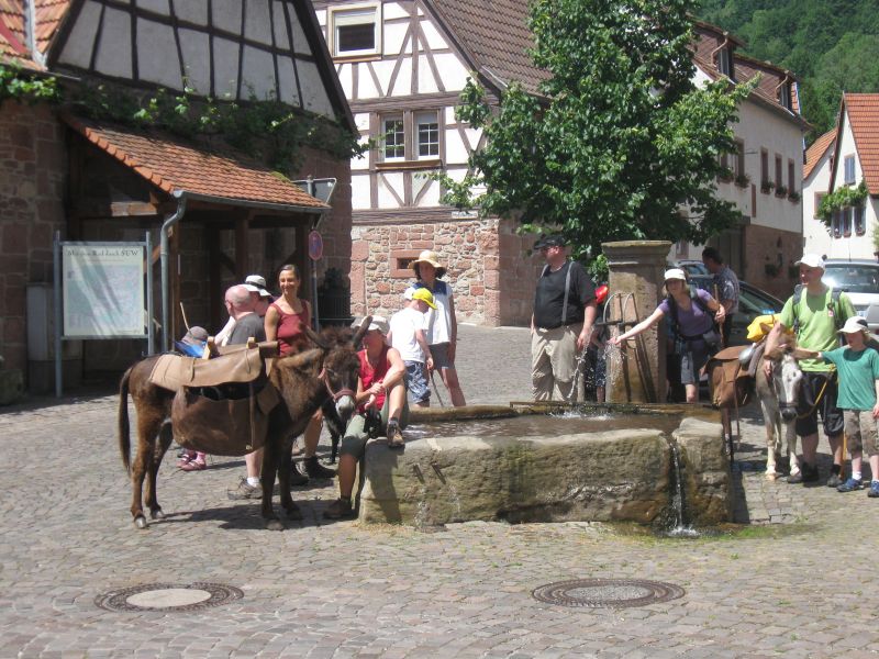 Unterwegs – auf ausgewählten Wegen und Pfaden - gibt es so Einiges zu sehen, seien es Burgen, Felsen oder sonstige Sehenswürdigkeiten, wo sich phantastische Fernsichten genießen lassen. Bei einer längeren Pause können sich unsere Vierbeiner stärken und auch wir nutzen die Gelegenheit unser Picknick zu genießen und die Seele baumeln zu lassen. Hier erfährt man auch so einiges über die so überaus sympathischen und lauffreudigen Esel. Zum Ende hin können wir noch zünftig Einkehren, wenn wir wollen.